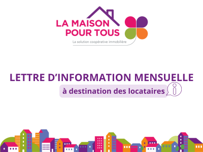 Jointe avec l’avis de paiement de nos résidents, la lettre d’information mensuelle de LA MAISON POUR TOUS communique de manière brève et ludique sur l’actualité de la Coopérative.