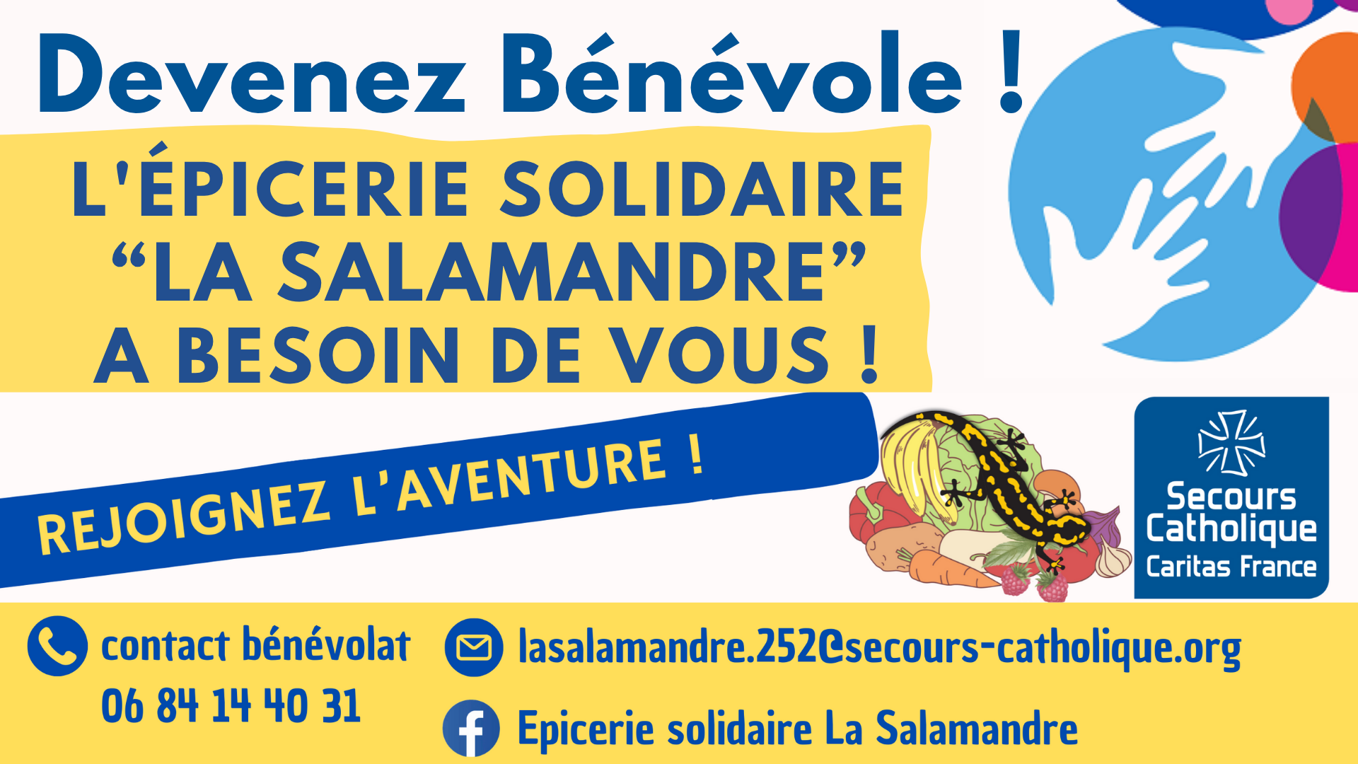 🤝 La Salamandre recherche des bénévoles. Vous avez du temps, l’envie de vous rendre utile localement ? L’épicerie solidaire a besoin de vous !