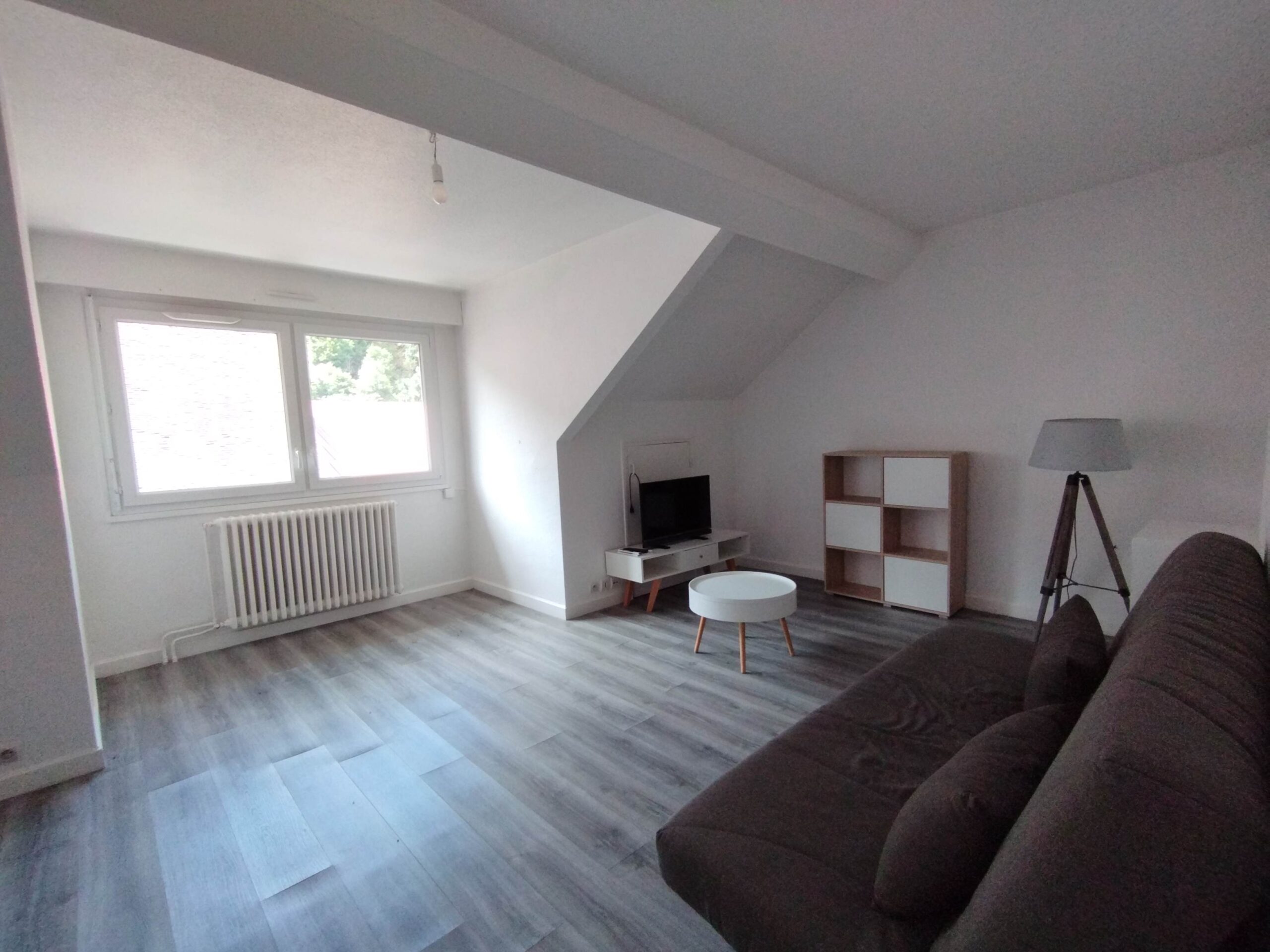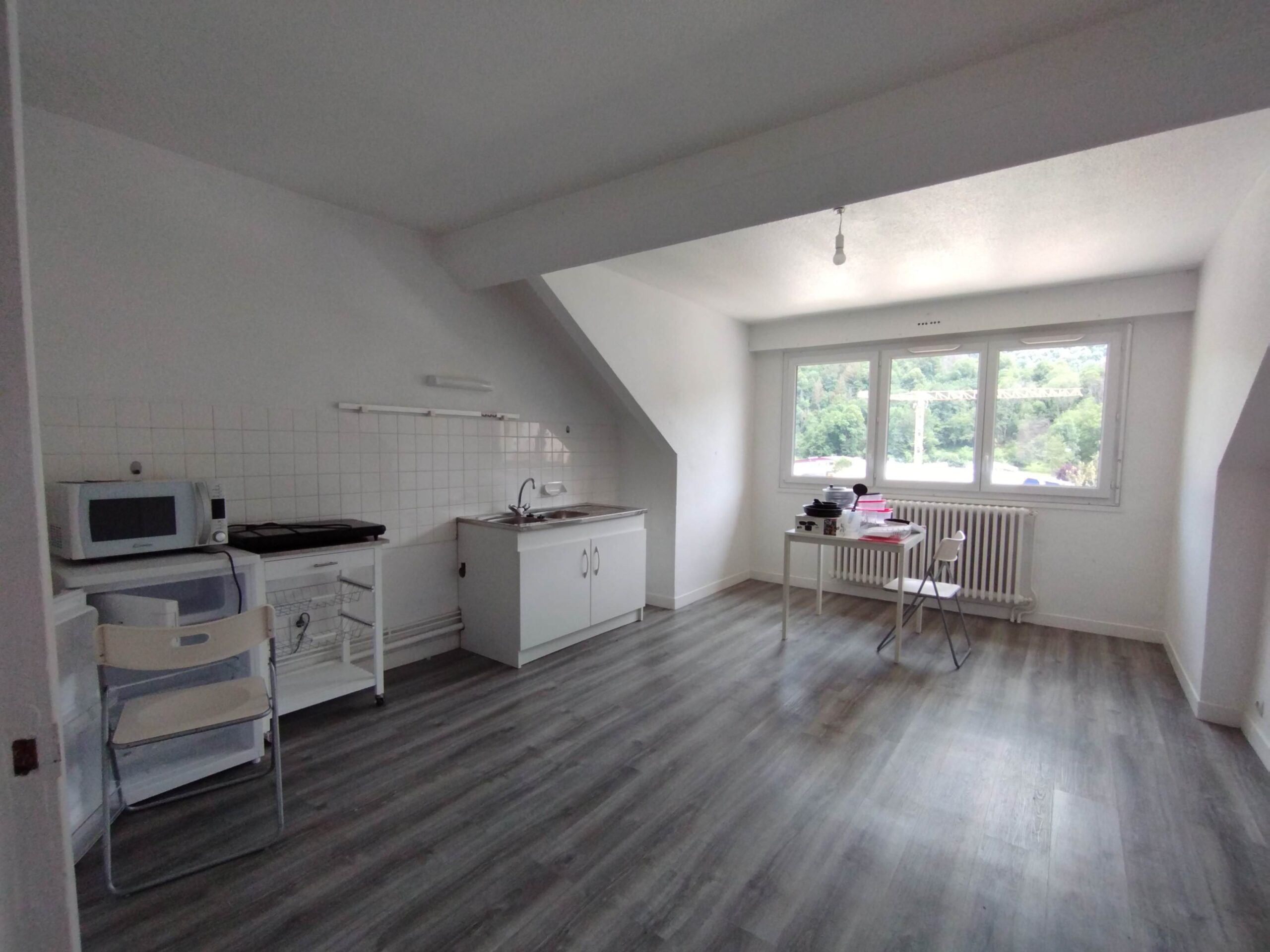 Il est composé d'une entrée avec placard, une grande cuisine de 20m² avec un grand cagibi, un salon/chambre de 15m². Vous bénéficiez également d'un toilette séparé et d'une salle de bain avec baignoire.
